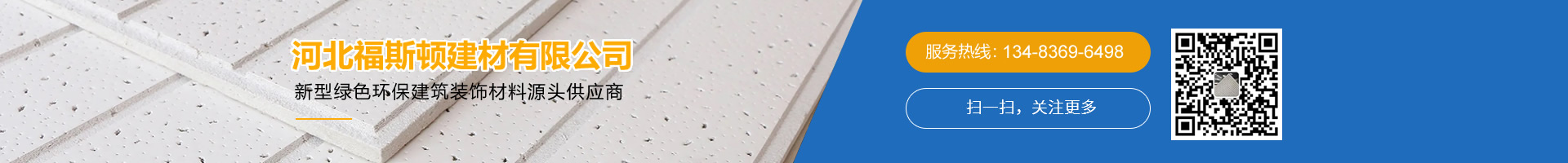 河北福斯頓建材有限公司位于河北省晉州市,是一家專業生產銷售:硅酸鈣板、纖維水泥板、礦棉板、硅酸鈣天花板、冰火板、烤漆龍骨、水泥壓力板的生產型企業,我公司專注于高品質、節能、環保、綠色建材產品的設計、研發、生產、銷售于一體的創新企業。 公司致力于研發生產新型綠色環保建筑裝飾材料,可生產各種型號硅酸鈣板、纖維水泥板、礦棉板、硅酸鈣天花板、冰火板、烤漆龍骨、水泥壓力板等建材,產品性能穩定、價格合理,廣泛...